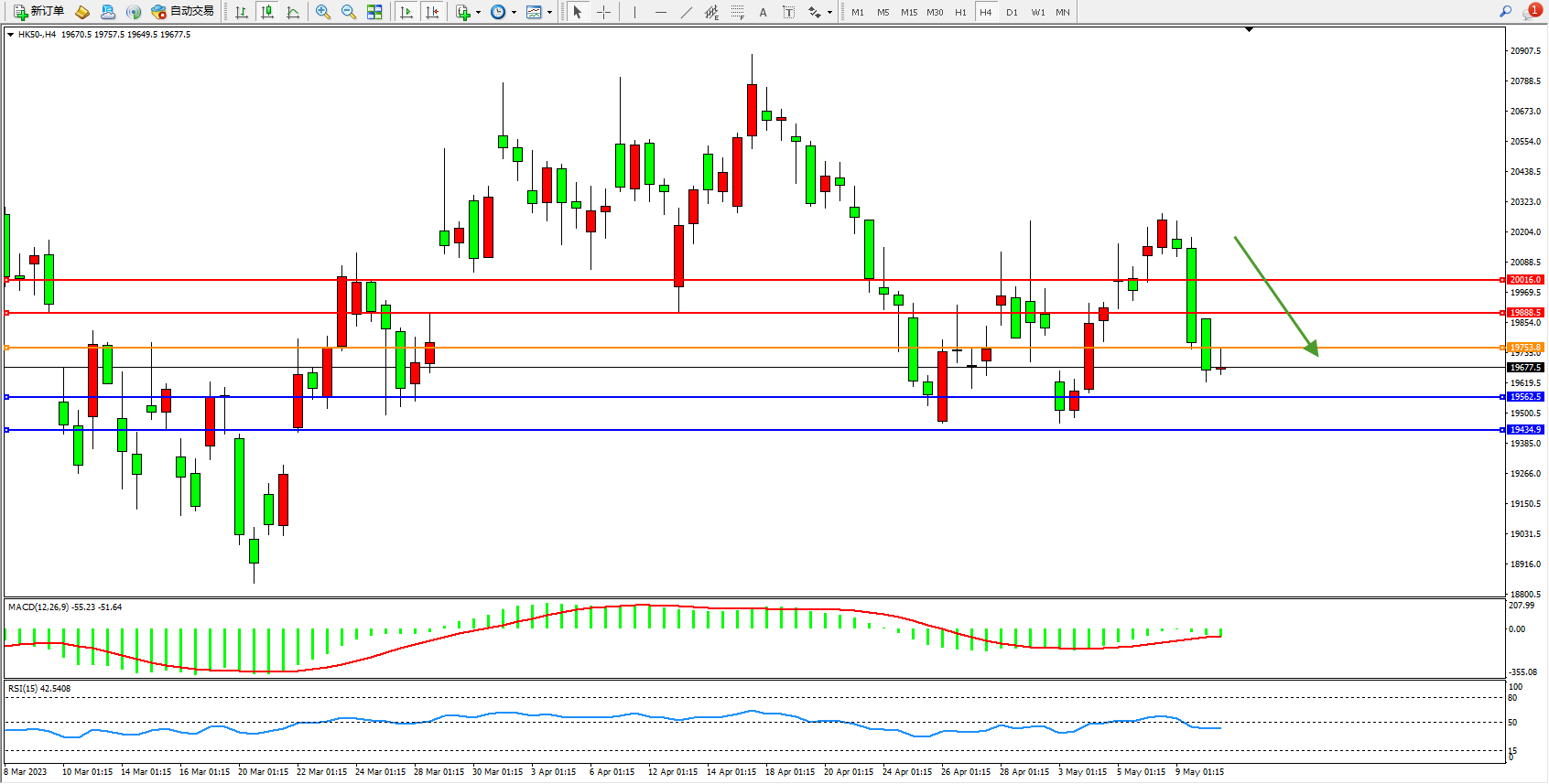 恒指HK50 4小时图