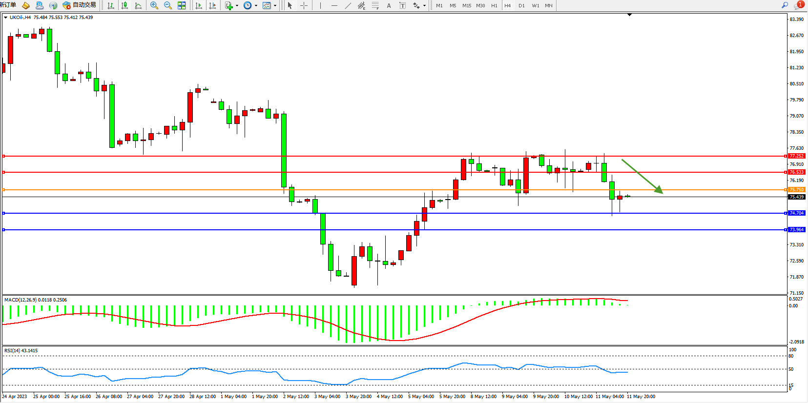 布油UKOil——4小时K线图显示: