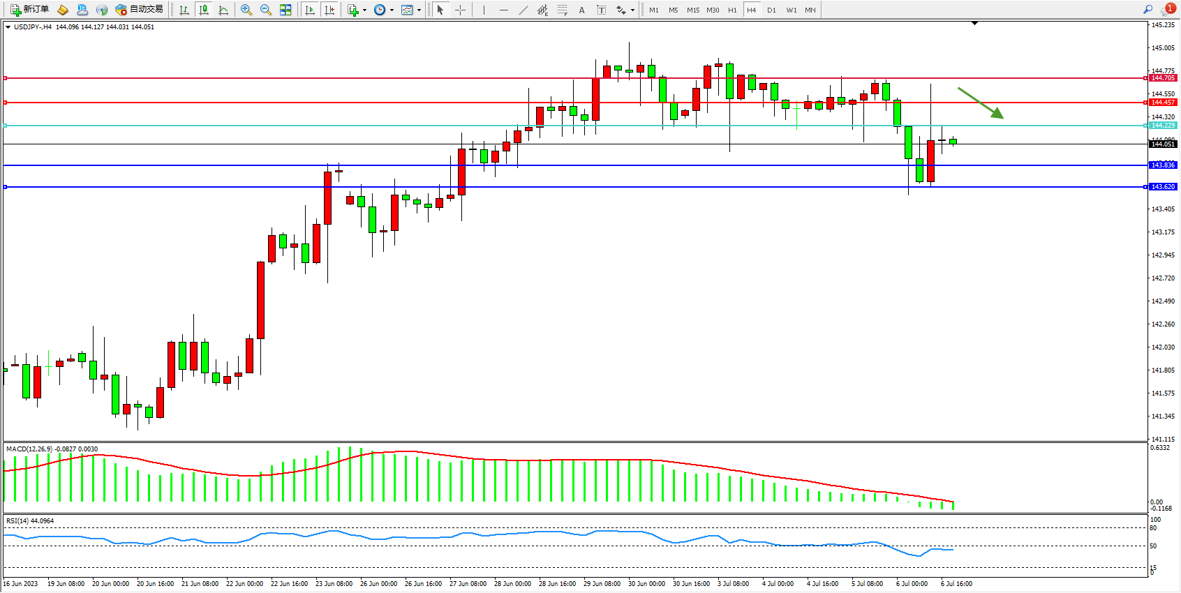 阻力位:144.457  144.705