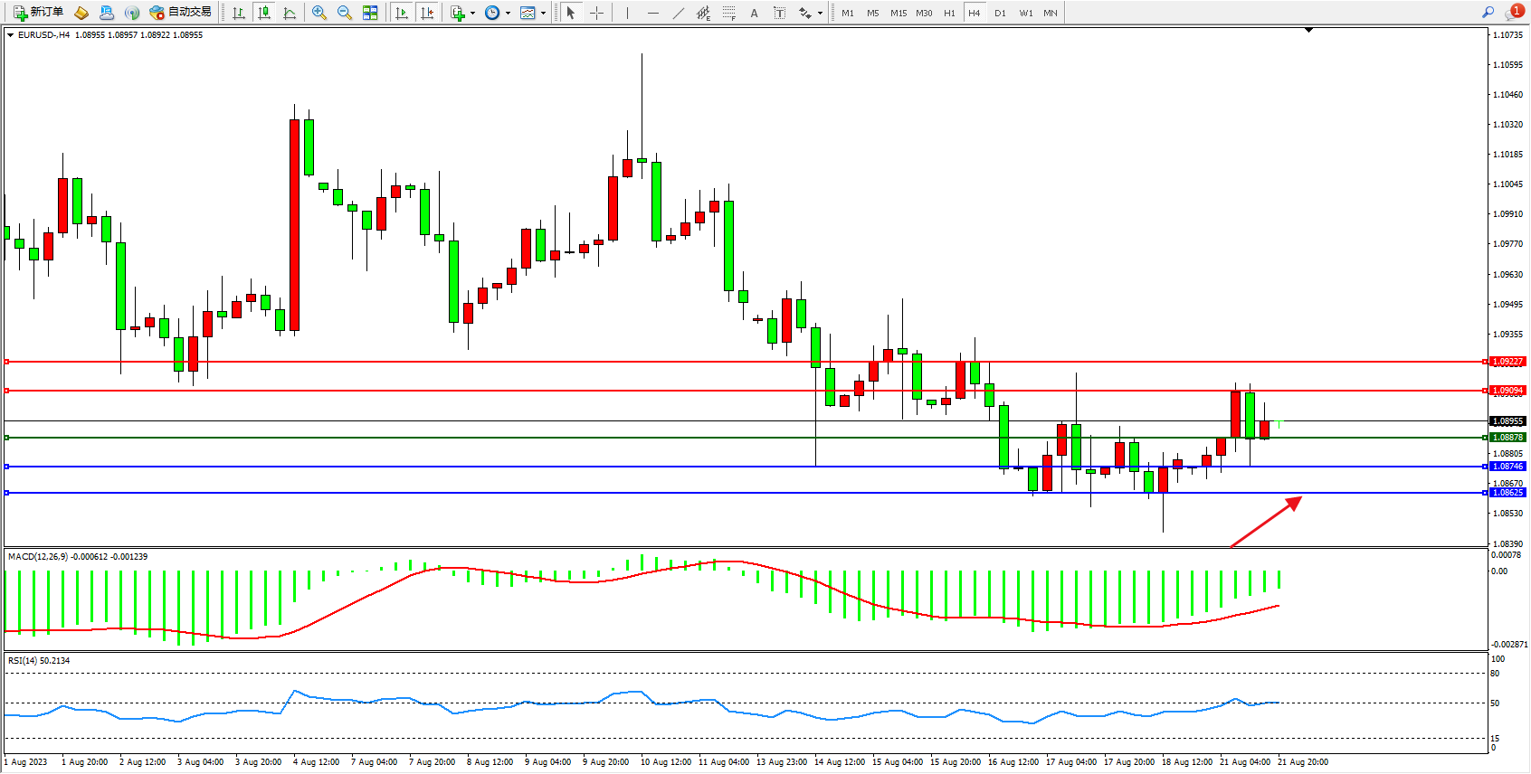 交易策略:1.08878上方看涨,目标1.09084  1.09227
