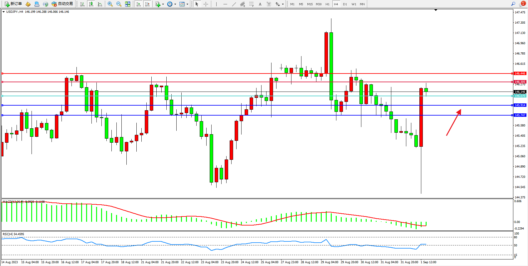 阻力位:146.305  146.446