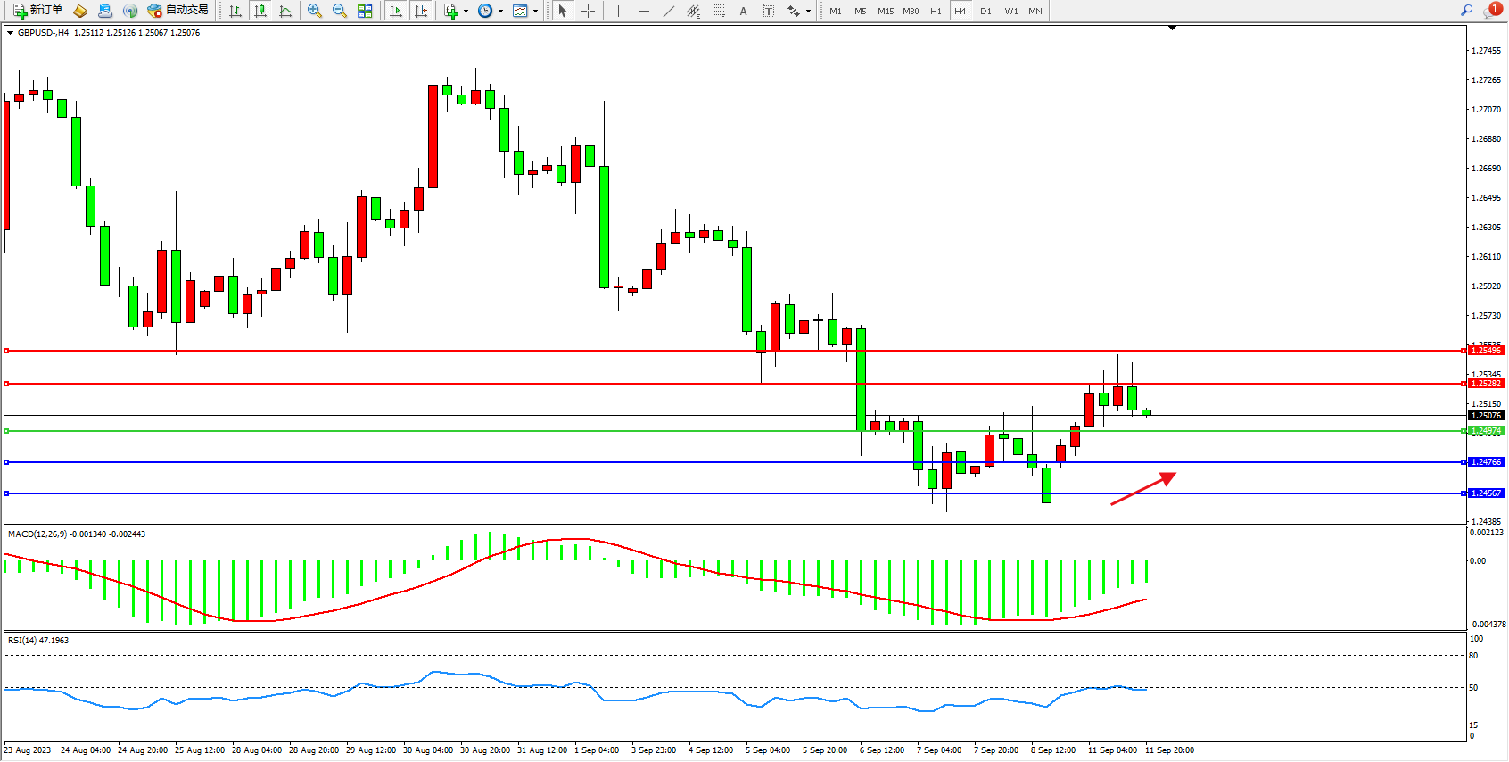 交易策略:1.24974上方看涨,目标1.25282  1.25496