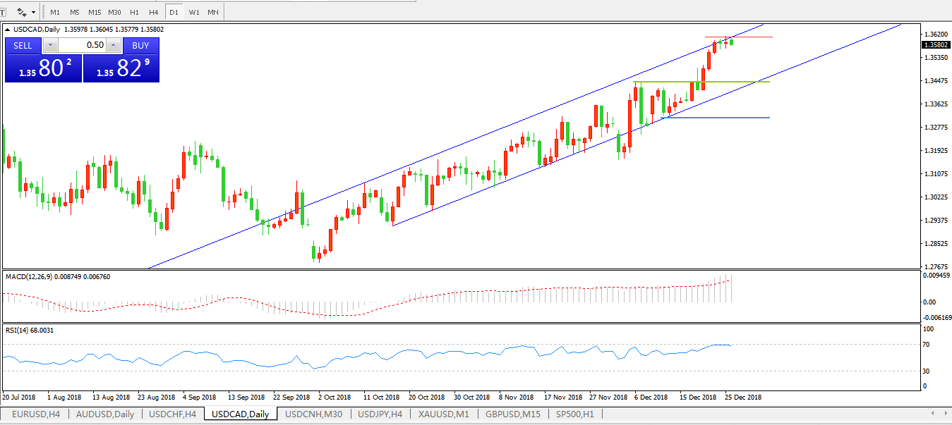 美元兑加元USDCAD日线
