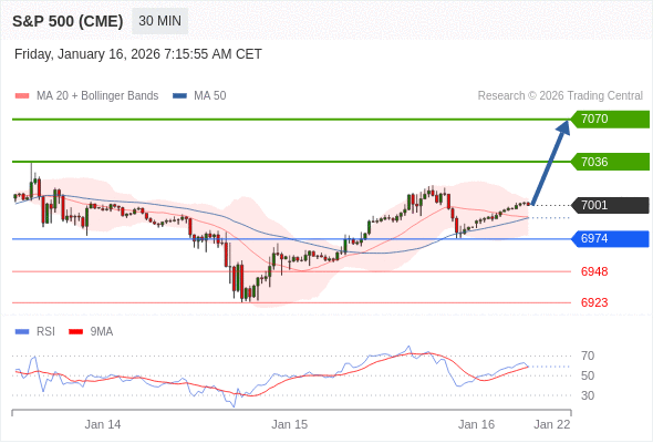交易策略: 在 6974 之上,看涨,目标价位为 7036 ,然后为 7070 。