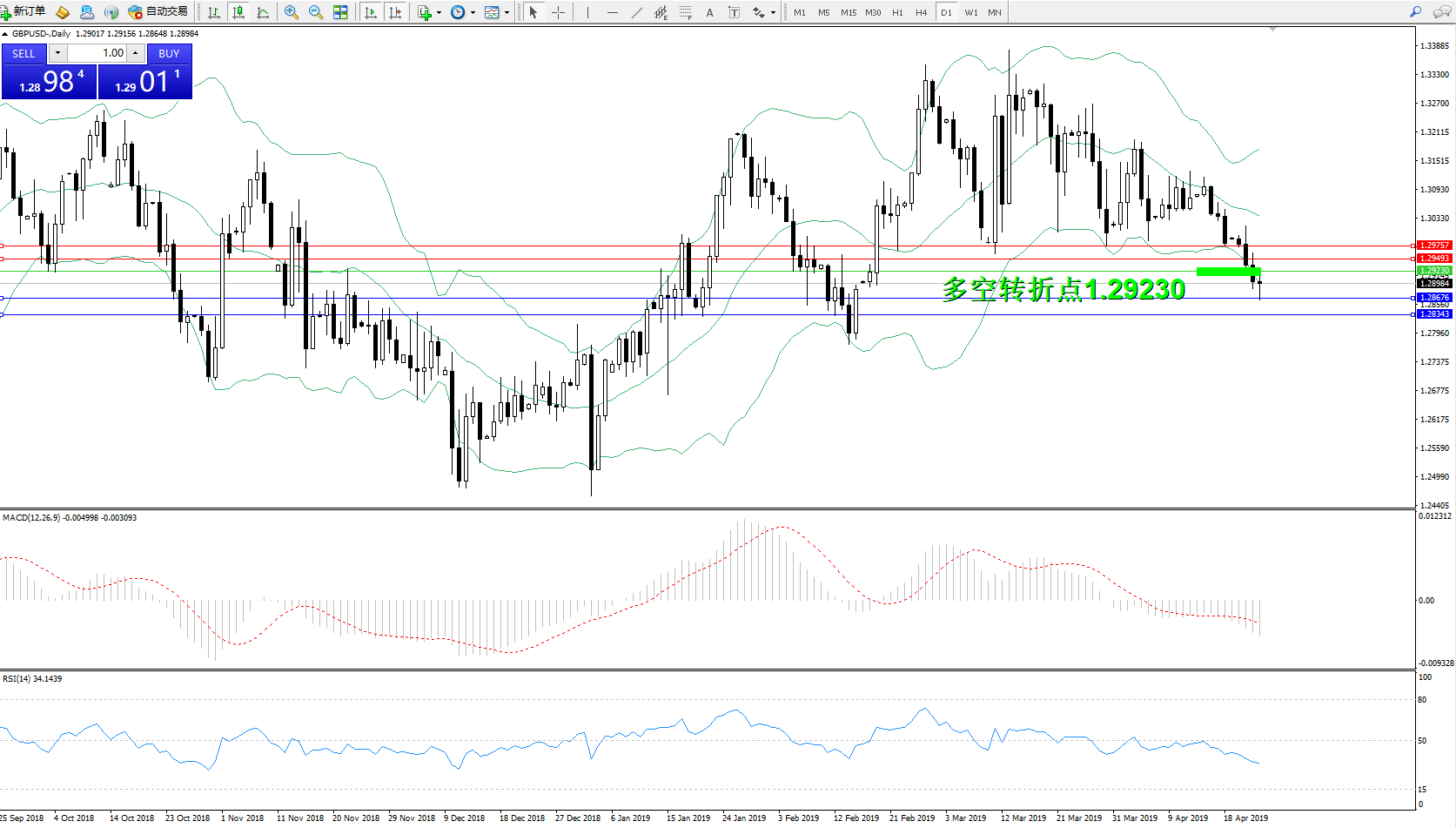 交易策略:1.29230下方看跌,目标1.286761.28343