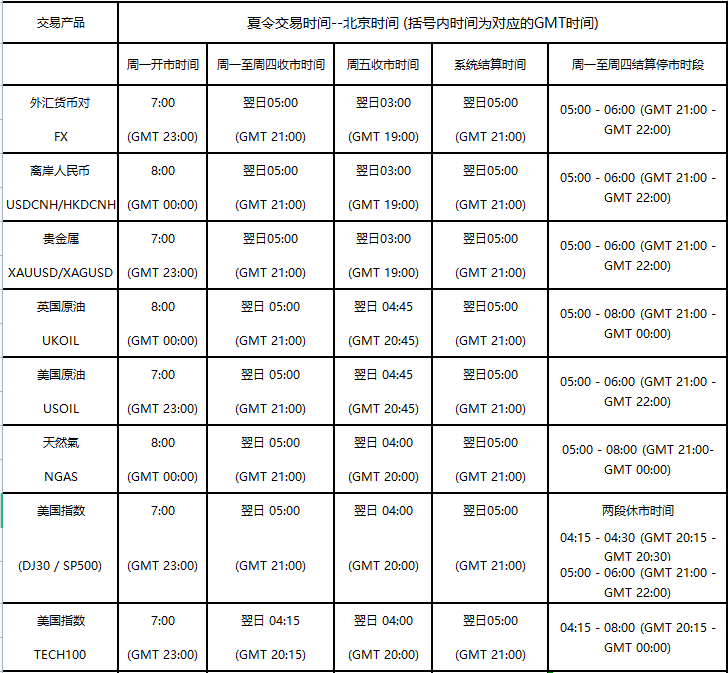 因应美国时区于2025年3月9日(周日)开始转为夏令时间, 本公司各产品交易时间将以下表安排调整为夏令时间,敬请留意。