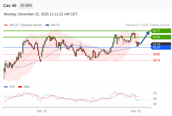 Cac 40 当日内: 超短线(当日内)支撑位在8119附近。