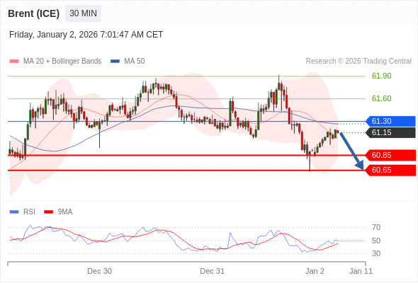 在 61.30 之下,看跌,目标价位为 60.85 ,然后为 60.65 。