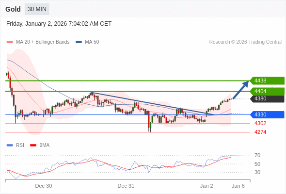 在 4330 之上,看涨,目标价位为 4404 ,然后为 4438 。