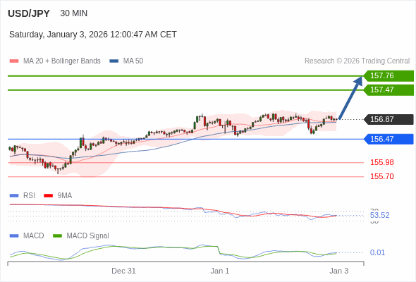 美元/日元 当日内 : 看涨,当 156.47 为支撑位。
