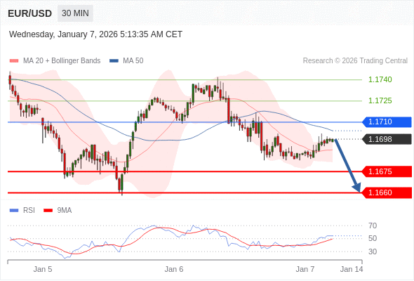 交易策略: 在 1.1710 之下,看跌,目标价位为 1.1675 ,然后为 1.1660 。