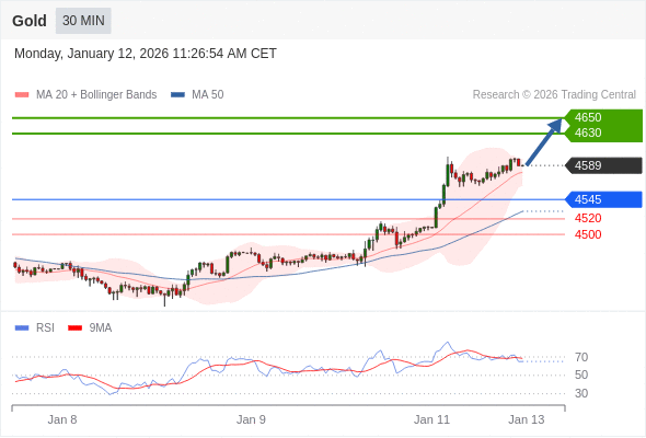 交易策略: 在 4545 之上,看涨,目标价位为 4630 ,然后为 4650 。