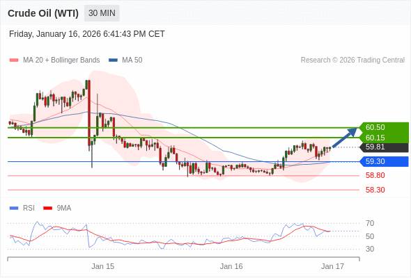 在 59.30 之上,看涨,目标价位为 60.15 ,然后为 60.50 。