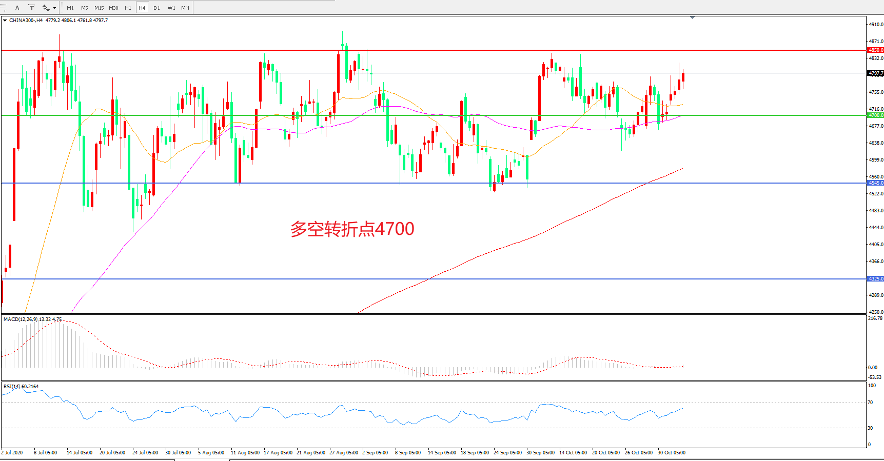 多空转折点:4700.00