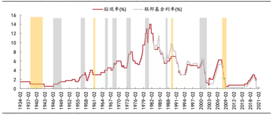 流动性收紧与美股拐点出现有着高度的相关性,同时,流动性收紧与美股拐点有着高度相关性。13 轮牛熊转换中,有 8 次均在流动性收紧的当月即出现了资产价格调整,而 1929 年 “大萧条” 和 1966 年 “闪崩” 的资本市场拐点则相较加息政策的开展滞后了 2 个月。