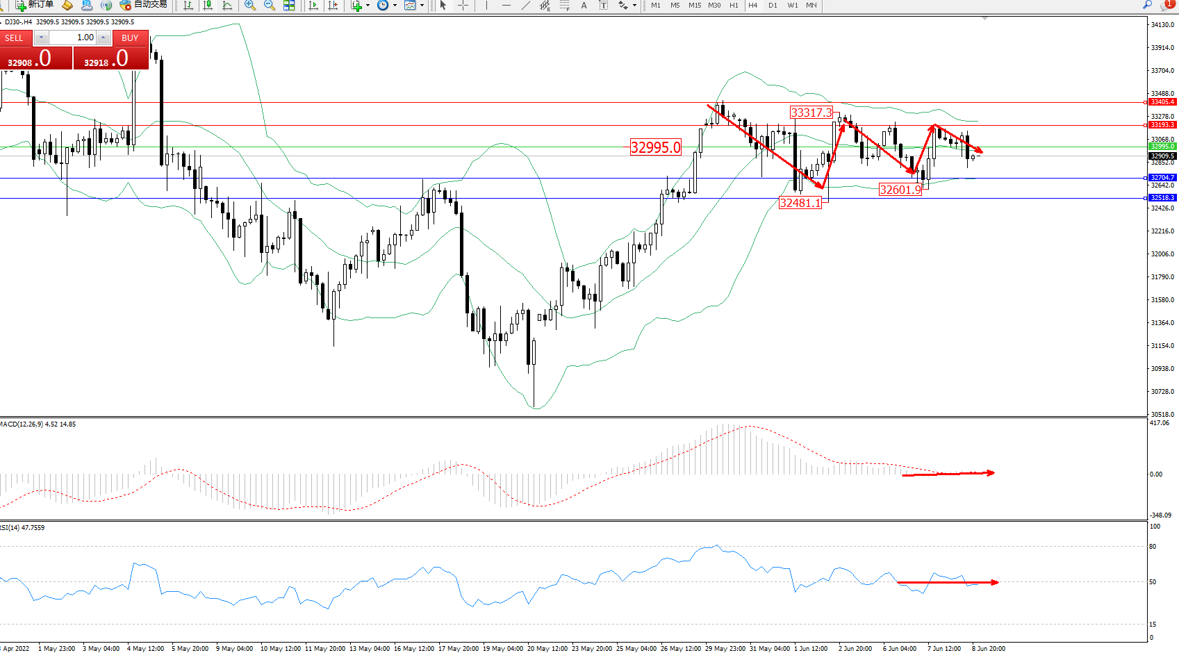 技术点评:长时间维持在布林带指标通道内宽幅震荡平移,期间多次来回刺探上下轨区间节点,布林带指标呈收口走势持续中,MACD指标处于0轴线附近弱势徘徊,RSI指标处于50均衡线附近窄幅整理;