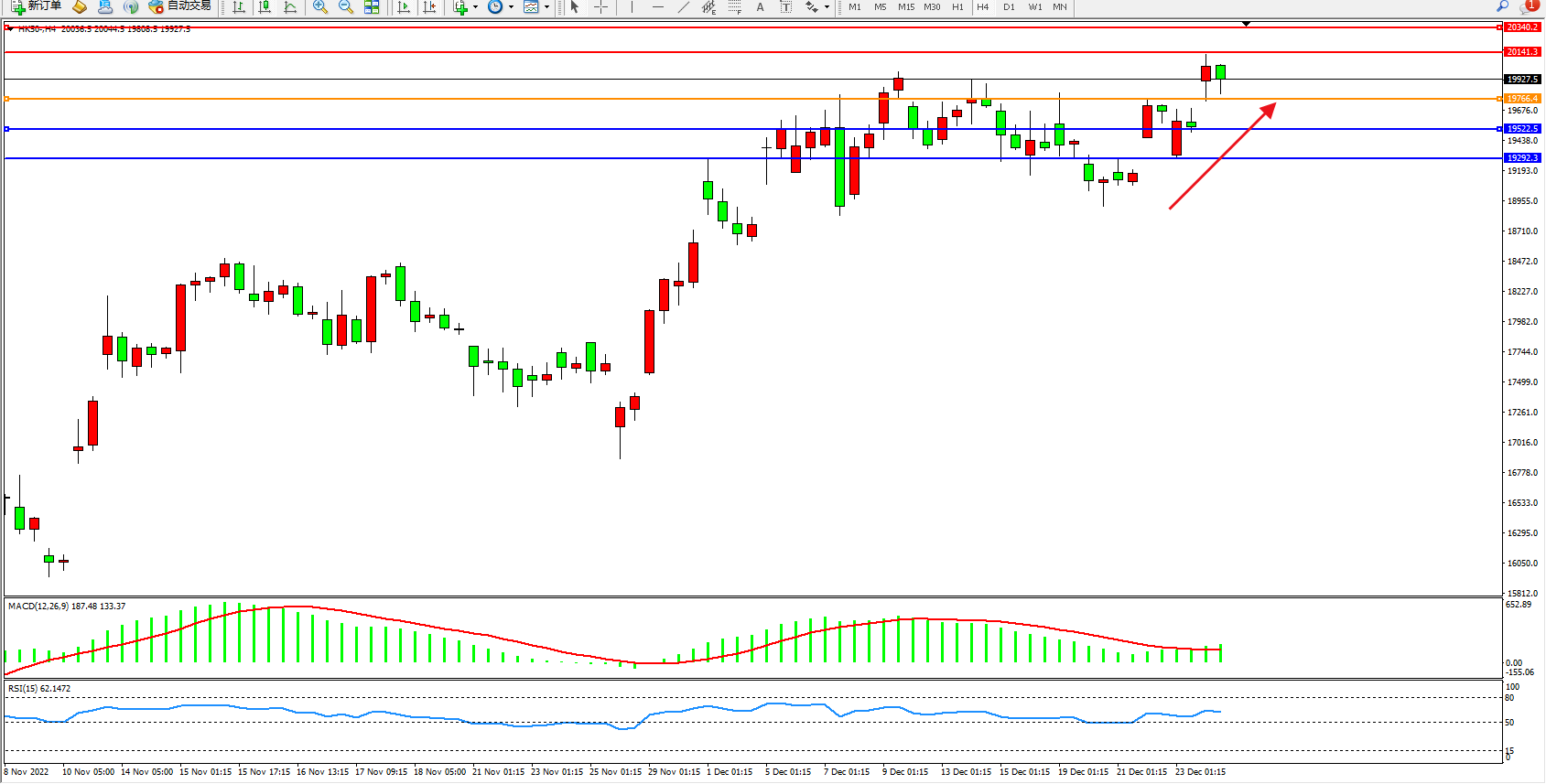 恒指HK50 4小时图