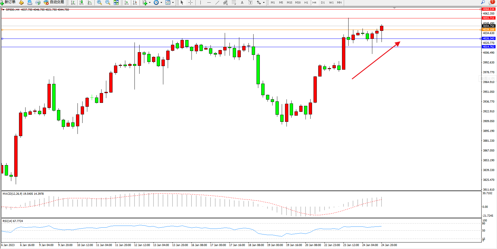 标普SP500——4小时K线图显示: