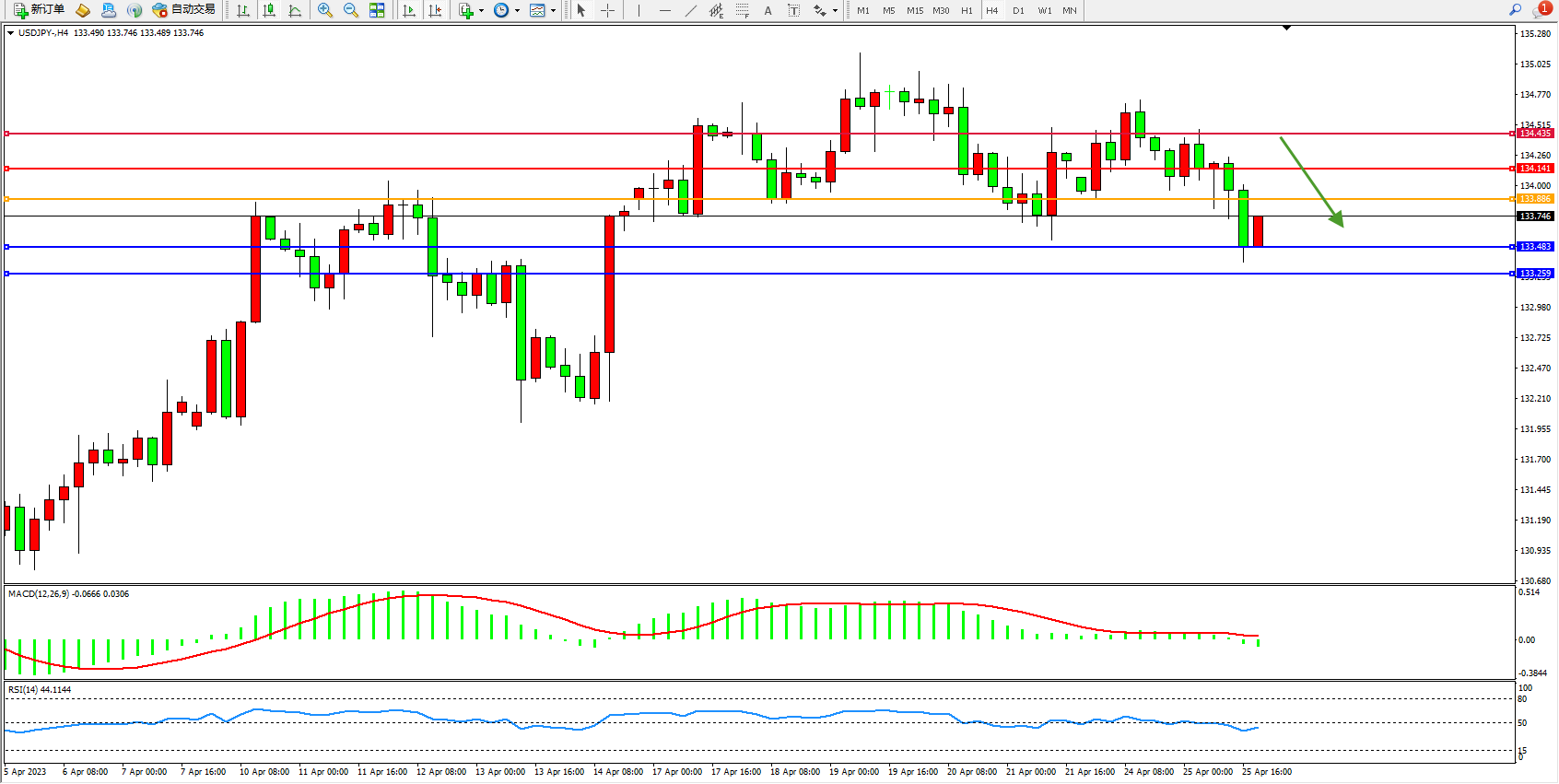 支撑位:133.483 133.259