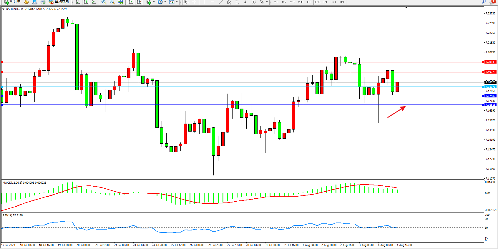 备选策略:1.18171下方看跌,目标7.17483  7.16818