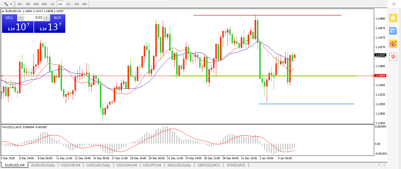 欧元兑美元EURUSD 4小时图: