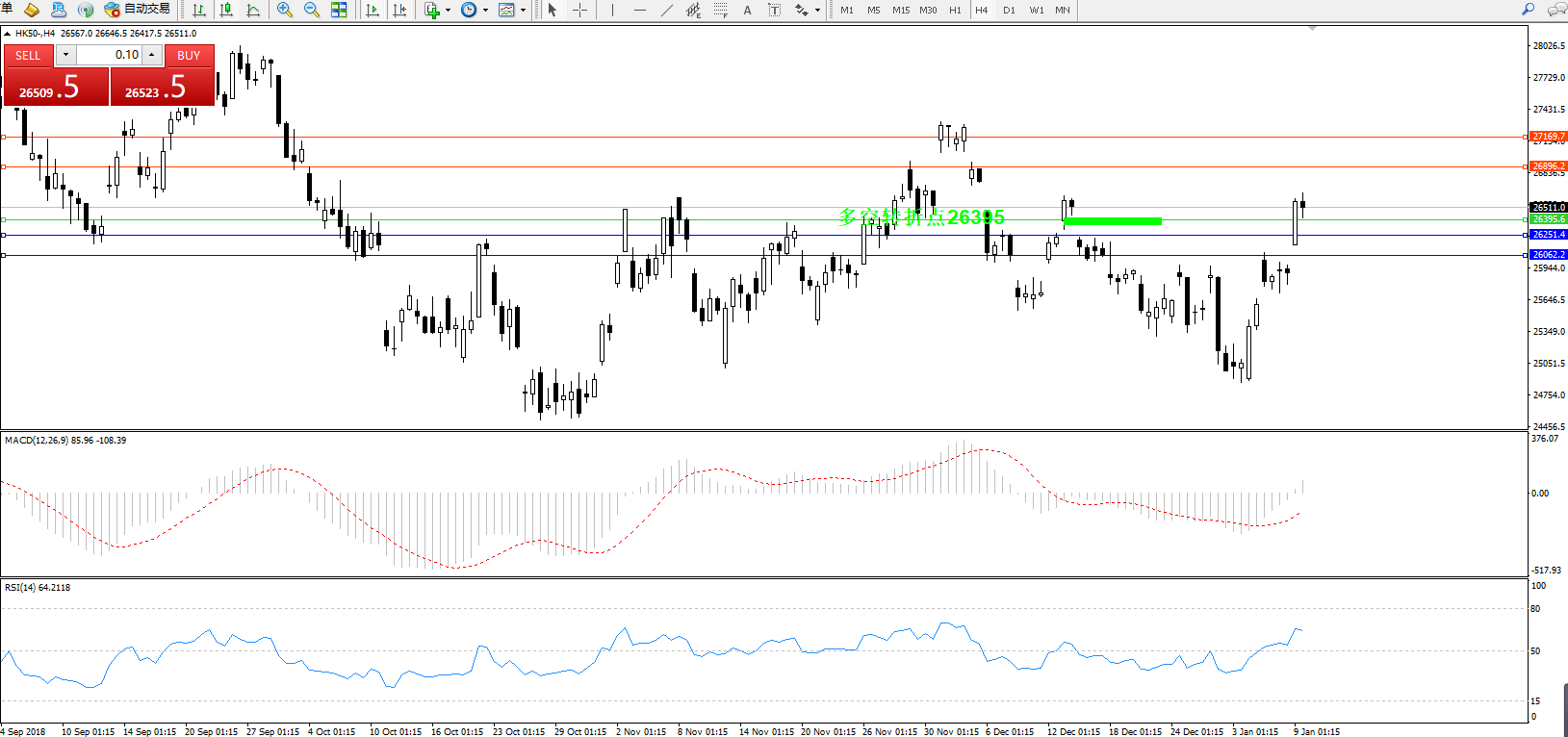交易策略:26395上方看涨,目标26896、27169